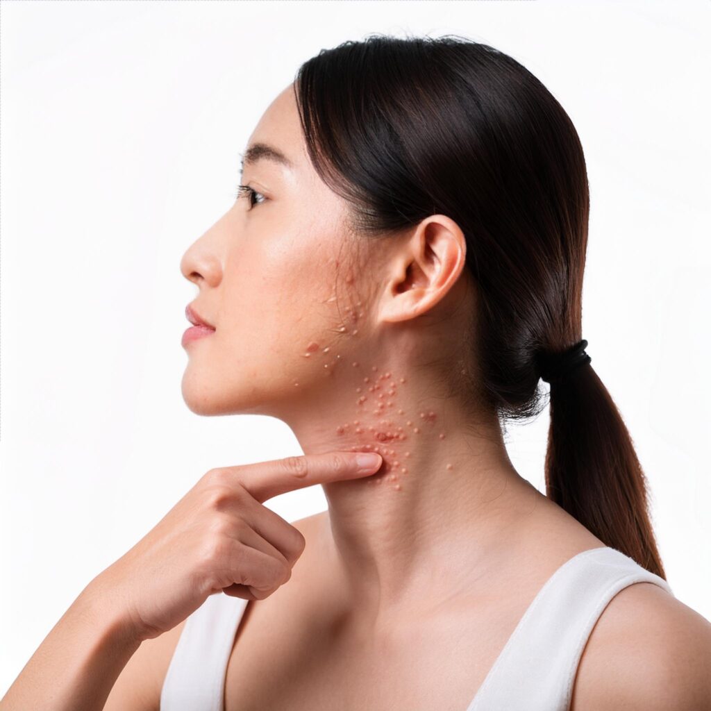 首のニキビは、顔や背中と同じように皮脂や汚れが毛穴に詰まることで発生する炎症性のニキビです。首の皮膚は比較的薄く、摩擦や汗、外部刺激の影響を受けやすいため、ニキビができやすい部位の一つです。特に、首元のニキビは目立ちやすく、治りにくいため、適切なケアが重要です。
